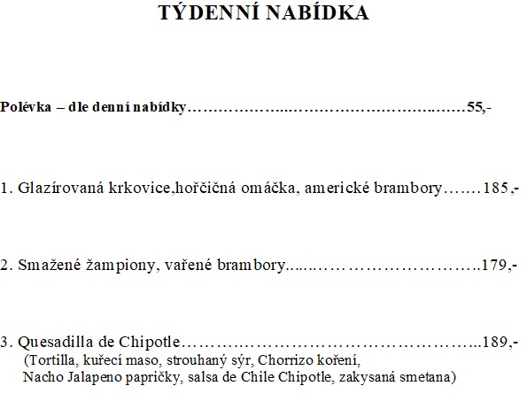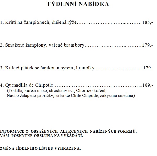 Poslední objednávky do kuchyně do 19.00hod., v neděli do 16hod.